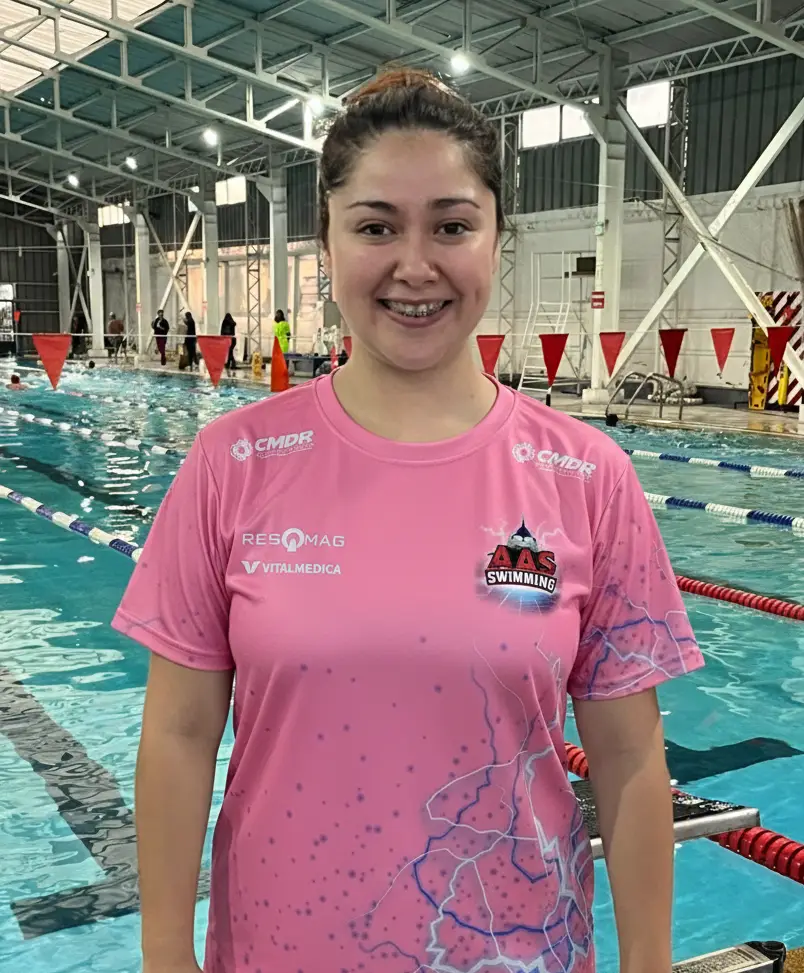 Su relación con el ambiente acuático comenzó desde muy pequeña, ya que practicó natación durante 13 años, llegando a ser nadadora competitiva de nuestro club, siendo seleccionada regional para los juegos JUDEJUT entre otros logros deportivos.